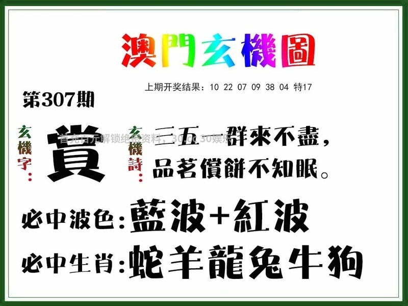 307期九肖龙牛鸡鼠虎兔蛇开:狗20中